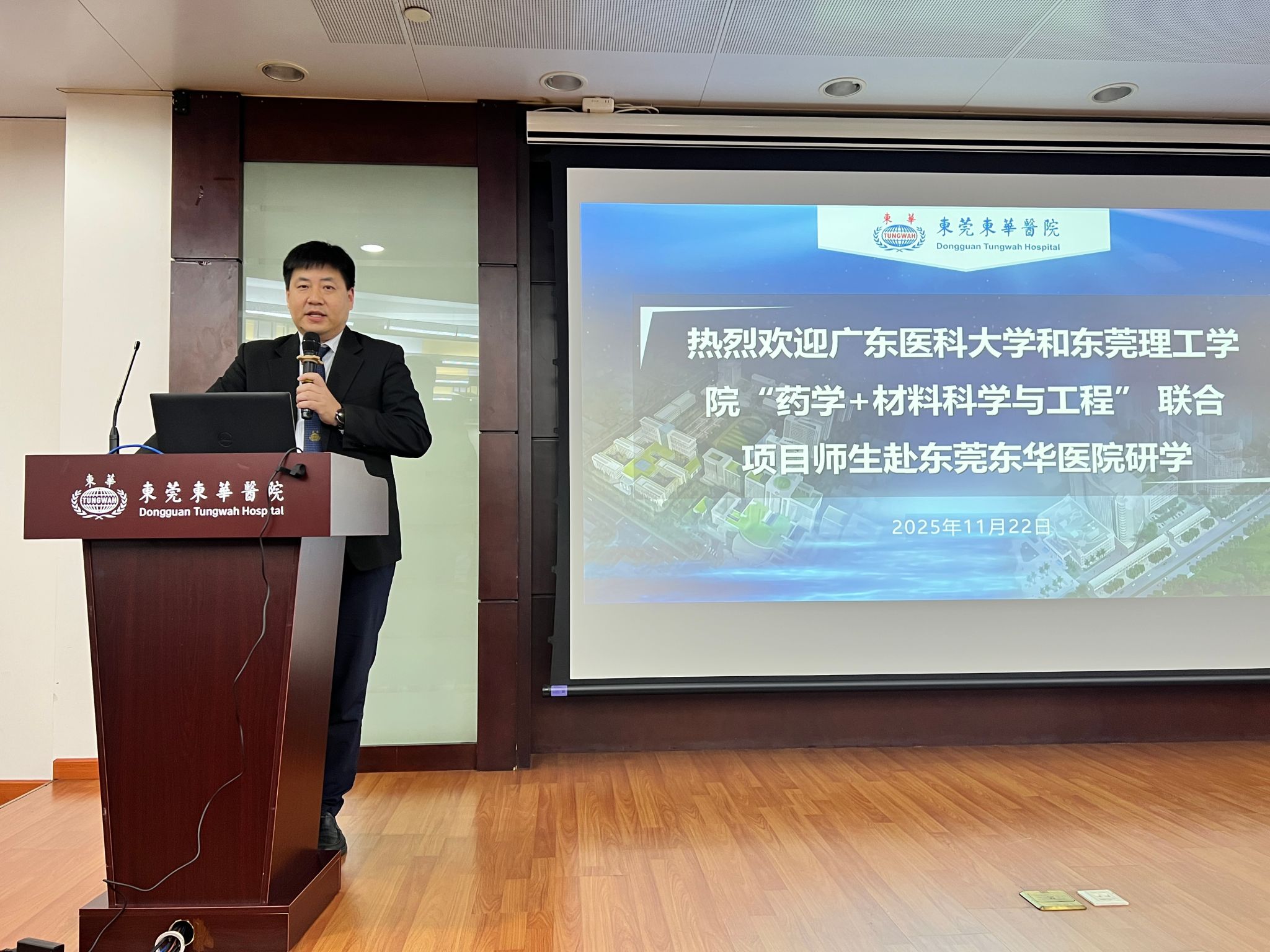 11月22日,广东医科大学药学院与东莞理工学院材料科学与工程学院联合举办2024级“药学+材料科学与工程”联合学士学位项目研学活动。活动以“医工交叉探前沿,联培学子谱新篇”为主题,由两院辅导员带队,先后走进东莞东华医院与深圳普门科技股份有限公司东莞分公司,同学们在医工实践场景中深化专业认知。