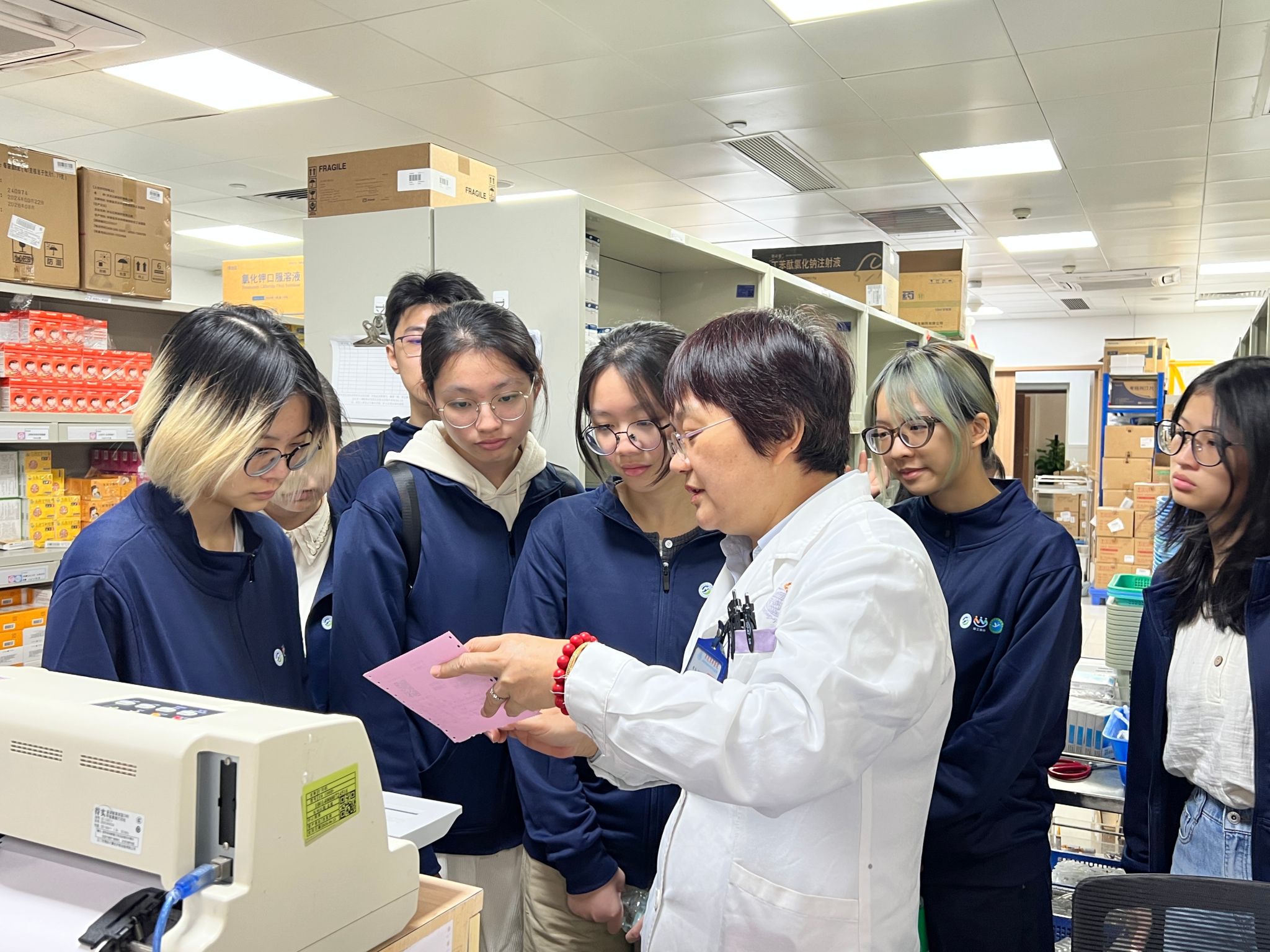 随后,同学们分成五组,依次前往西药房、中药房、中心药房、静配中心及临床药学+GCP科室参观学习,每组在各点位实景观摩、沉浸体验,近距离了解药品调配流程、临床药学服务模式与质控管理体系,进一步明晰药学专业在临床场景的实践应用。