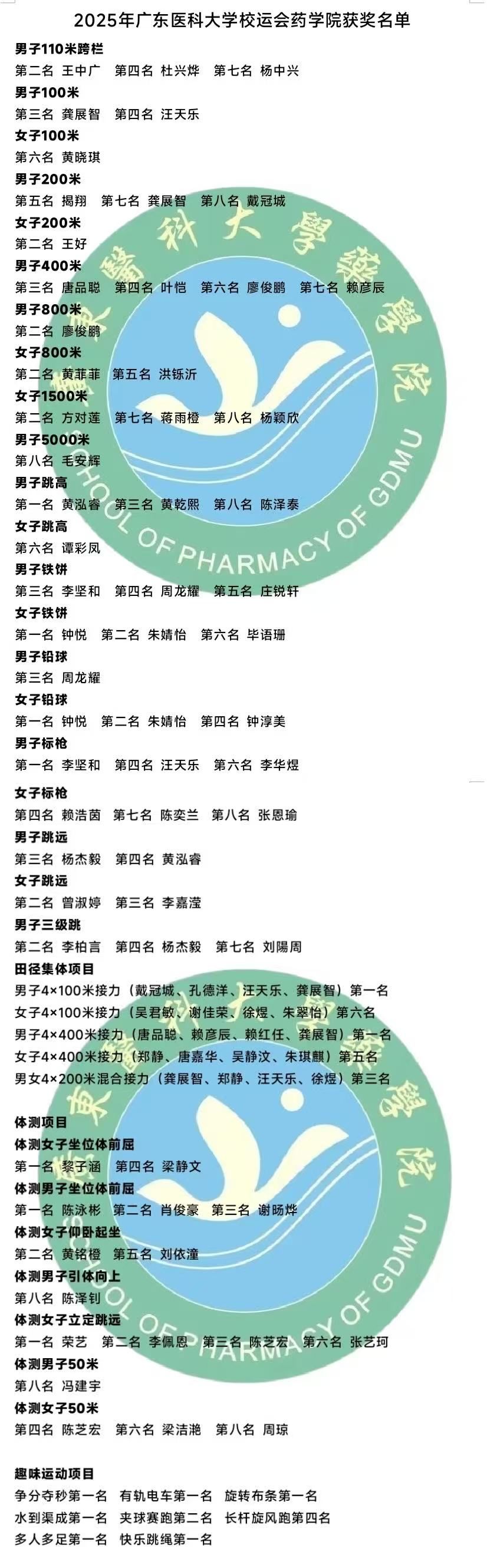 校运会的激情盛宴虽已画上圆满句号,但“生命不息,运动不止”的信念永远滚烫!未来,药学院的师生们将继续传承和发扬坚韧不拔、奋勇争先的体育精神,把赛场上的热血与执着融入日常,以更强健的体魄、更昂扬的姿态勇毅前行,共同续写药学院更加璀璨辉煌的新篇章!