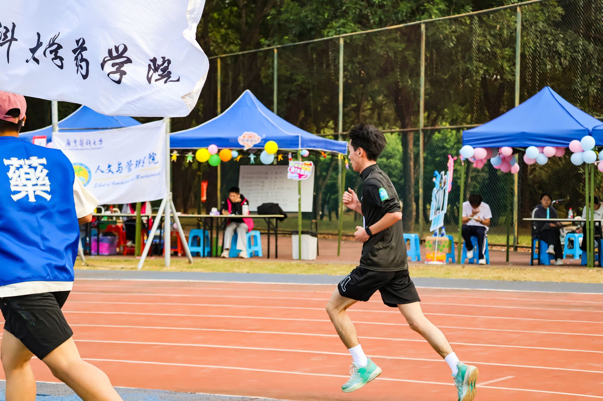 赛道旁,陪跑志愿者高举院旗、接力护航,与运动员并肩驰骋于赛场之上,为运动员们传递坚定昂扬的勇气与力量。看台上,助威的呐喊与热烈的掌声此起彼伏、交融共振,激励着每一位赛场上的拼搏者。这一幕幕奋进的图景,不仅定格了运动的激情,更彰显着药苑人团结奋进、永不言弃的精神底色。