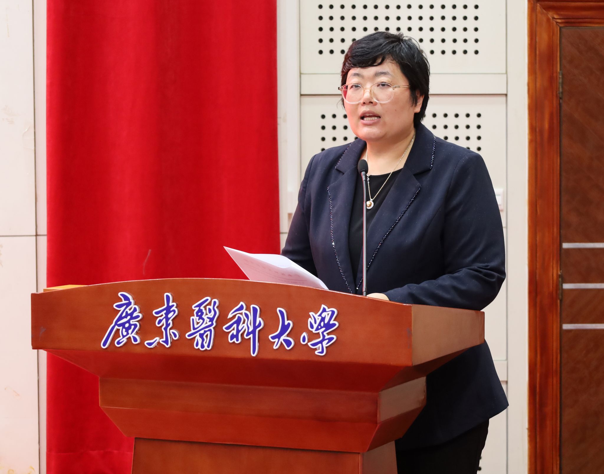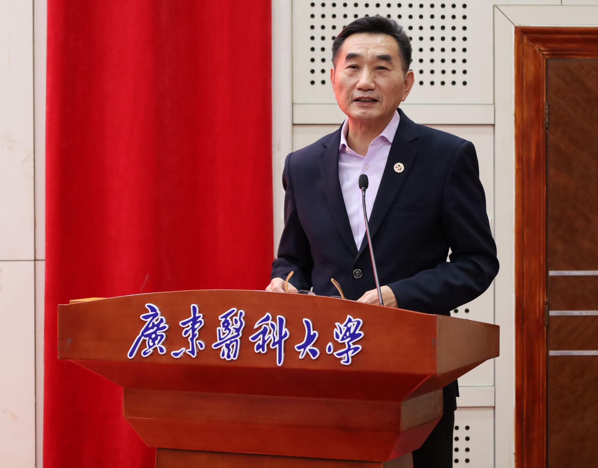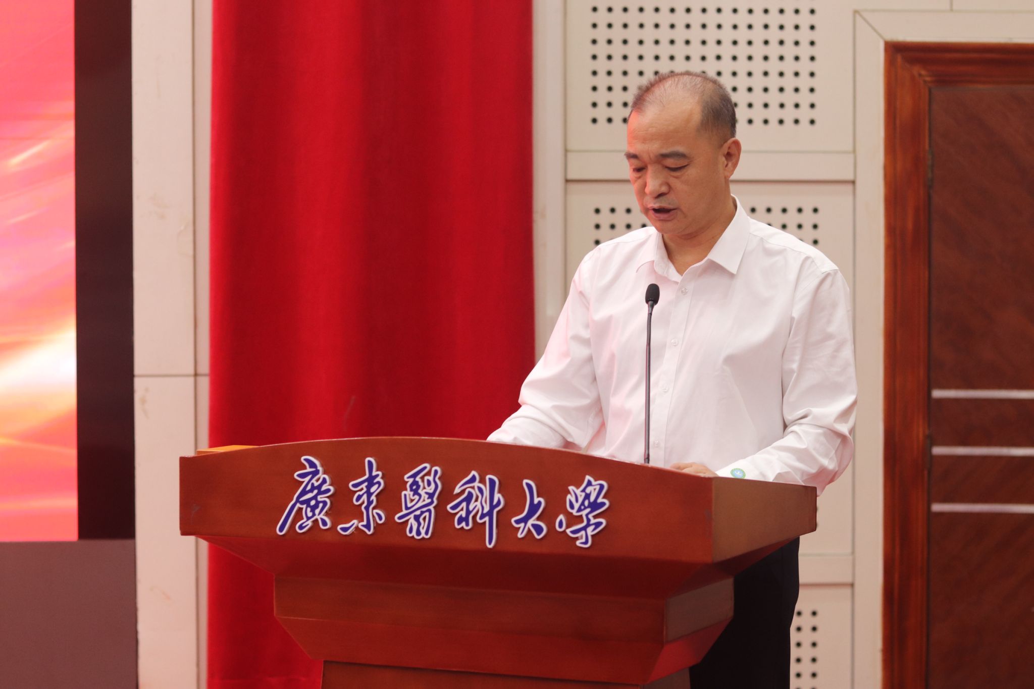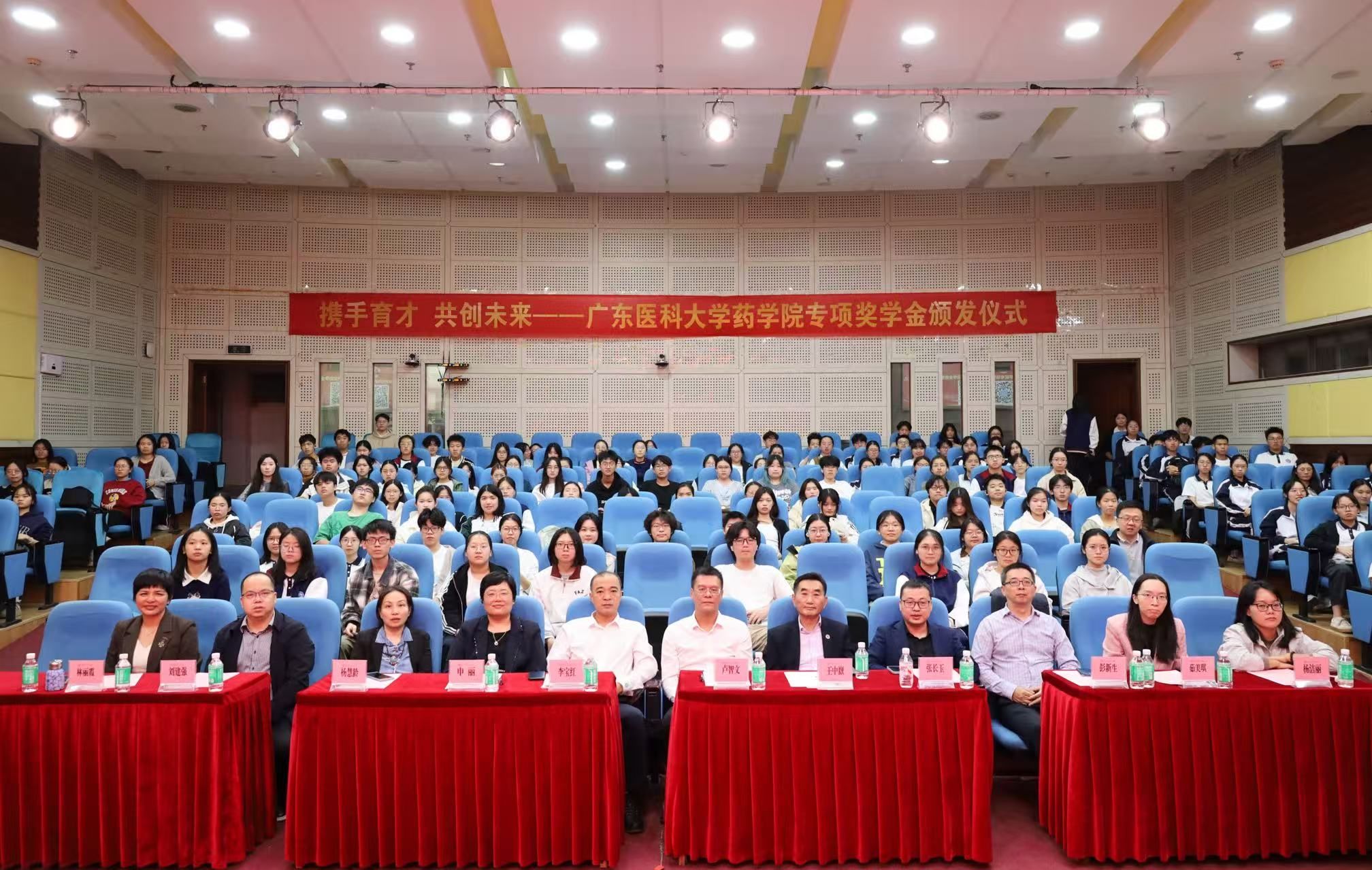 12 月 5 日,广东医科大学药学院专项奖助学金颁发仪式在行政楼报告厅顺利举办。东莞松山湖社会事务局局长卢智文受邀出席,广东红珊瑚药业有限公司董事长王中嶽、广州华侨仪器科技有限公司总经理张长玉率领企业代表莅临现场,药学院党委书记李宝红、院长申丽及药学院师生代表共同见证,政企校齐聚,共话育人初心。