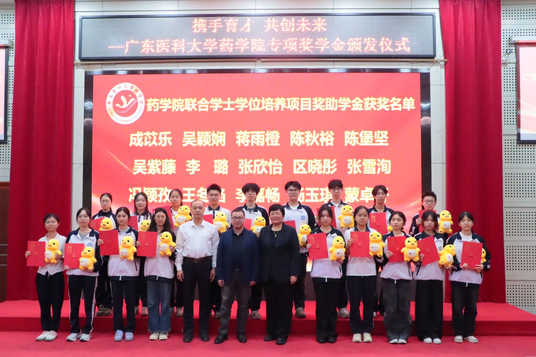 此次颁发仪式不仅为学生提供了物质支持与精神激励,更搭建了 “企业捐赠 + 慈善搭桥 + 高校育人” 的协同平台。下一步,学院党委将始终坚持“以学生为中心”的育人理念,搭建校企合作平台,药学院资助科未来将进一步优化奖助体系、细化资助措施、规范资金管理,为每一位学子成长成才保驾护航。同时深化与两家企业的合作,推动产教融合向纵深发展,充分整合企业资源、慈善力量与高校育人优势,为医药健康行业培养更多高素质应用型人才,共同书写“校企协同、立德树人”的新篇章!(文/陈可盈 图 /梁晓冰、杨语萱)
