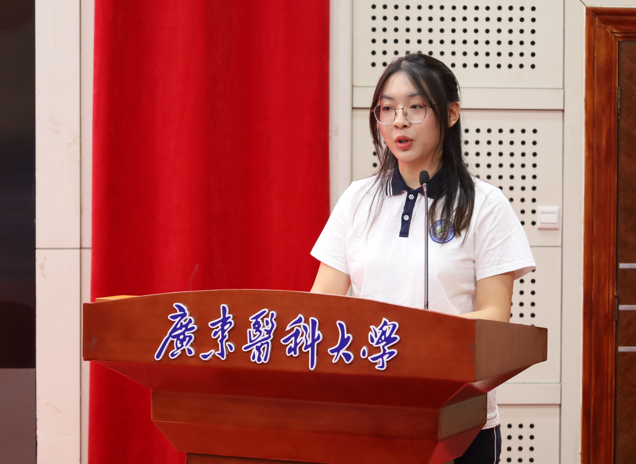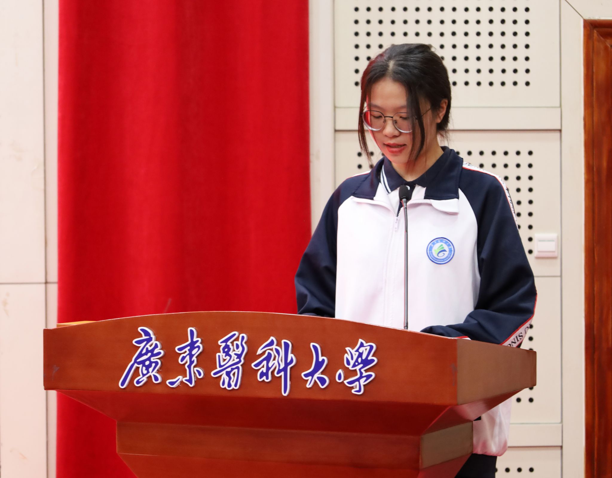 2023级中药学专业学生代表黎晓彤作为红珊瑚奖助学金获奖代表发言,她向心系教育的捐赠企业、慈善会代表、学院领导及老师们表达了诚挚感谢,讲述了自己对于学院培养精神的坚守、培养模式的理解以及在学习过程中的心得体会,表示自己会将关爱转化为前进动力,积极传递爱心,用实际行动回报社会与学校,做有理想、敢担当、能吃苦、肯奋斗的新时代药学人。