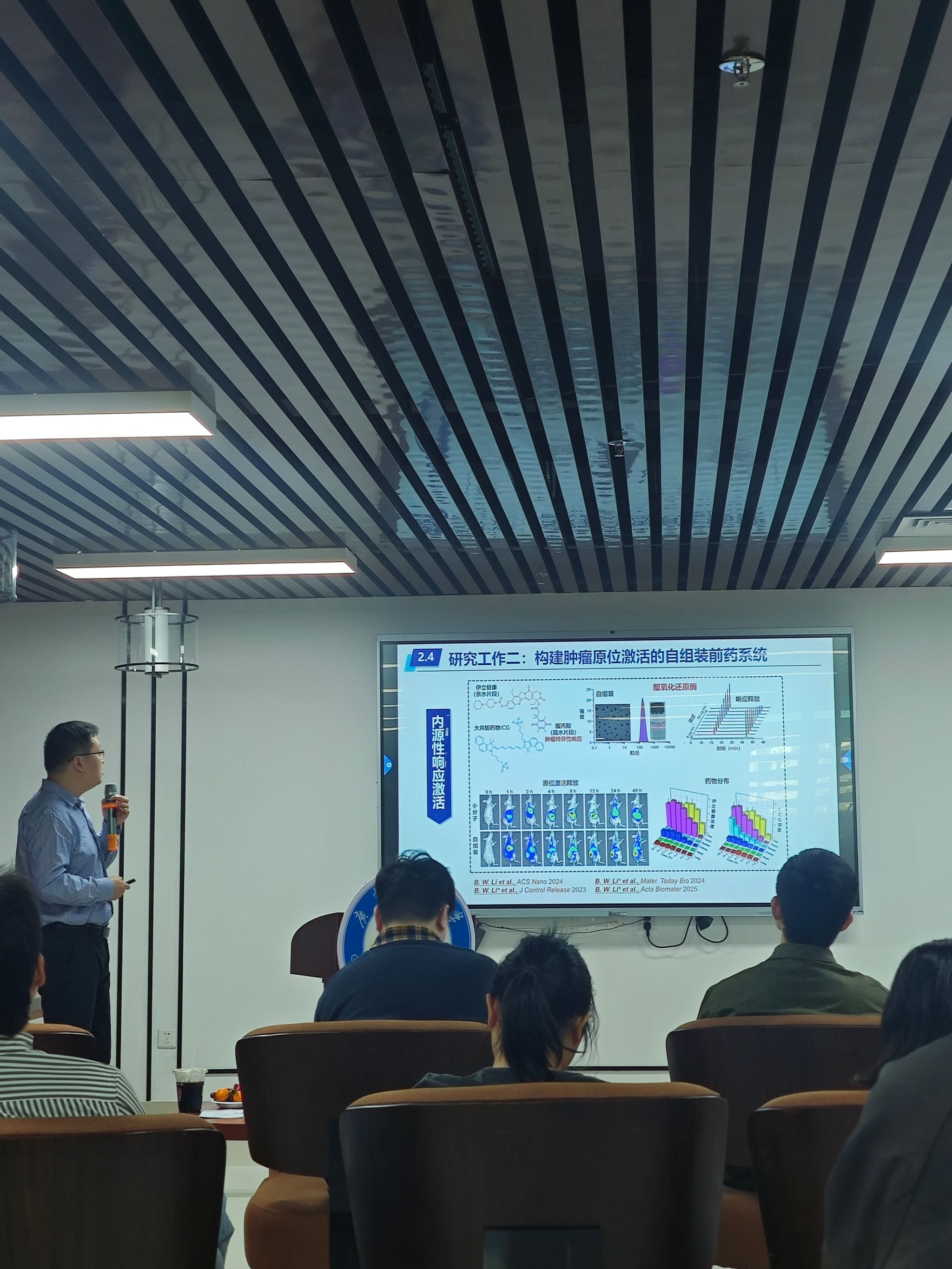 李博文教授系统介绍了其团队在“原位激活型自组装前药递送系统”上的创新。研究旨在解决传统前药在肿瘤部位转化效率低、靶向性差的难题。通过巧妙的分子设计,该系统能响应肿瘤微环境特异性信号,实现药物的精准“原位激活”与智能自组装。该策略不仅显著提升了药效与安全性,更融合了诊断成像功能,并能协同多种治疗模式(如光动力与铁死亡),为开发下一代智能抗肿瘤药物提供了全新平台。