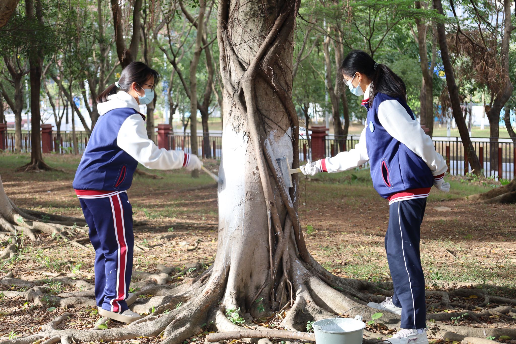 来自药学院的谢祎帆和志愿者们交流道:“以前总觉得树木刷白只是让校园更整洁,没想到这里面藏着这么多护树的科学门道。看着自己涂刷的树木穿上‘防护衣’,特别有成就感,也真切感受到园林工人日常劳作的辛苦,以后一定会珍惜爱护校园环境。”