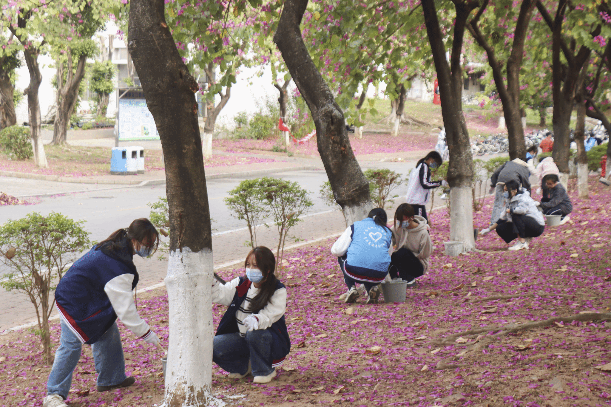 冬日校园,紫荆绽放,青春与浪漫的共鸣。为扎实推进校园冬季绿化养护工作,降低树木病虫害发生率,助力树木安全越冬,12月14日,广东医科大学药学院青年志愿者协会在药学院团委、学校总务后勤部及物业的联合指导下,在东莞校区开展 “爱心刷白,守护绿意”树木养护志愿服务行动。活动以冬季树木养护为核心,深度融合劳动教育与生态保护实践,组织 “护绿使者” 们用实际行动为美丽校园注入青春动能。