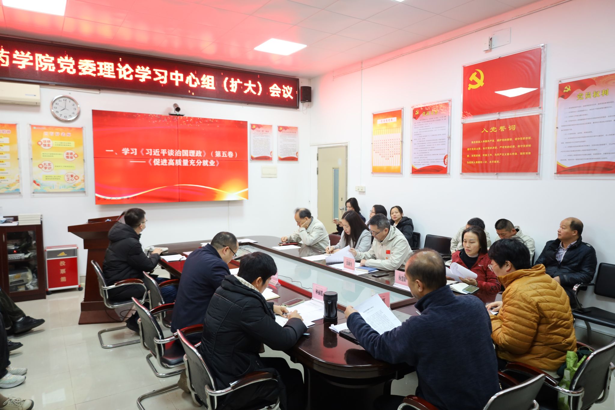 为深入学习《习近平谈治国理政》第五卷中促进高质量充分就业重要论述,并研讨部署学院就业升学等重点工作。1月7日,药学院召开党委理论学习中心组(扩大)会议,学院班子成员、党委委员、纪委委员、组织员、党支部书记、系(中心、所)负责人、学生科负责人及全体辅导员参会,会议由学院党委李宝红书记主持。