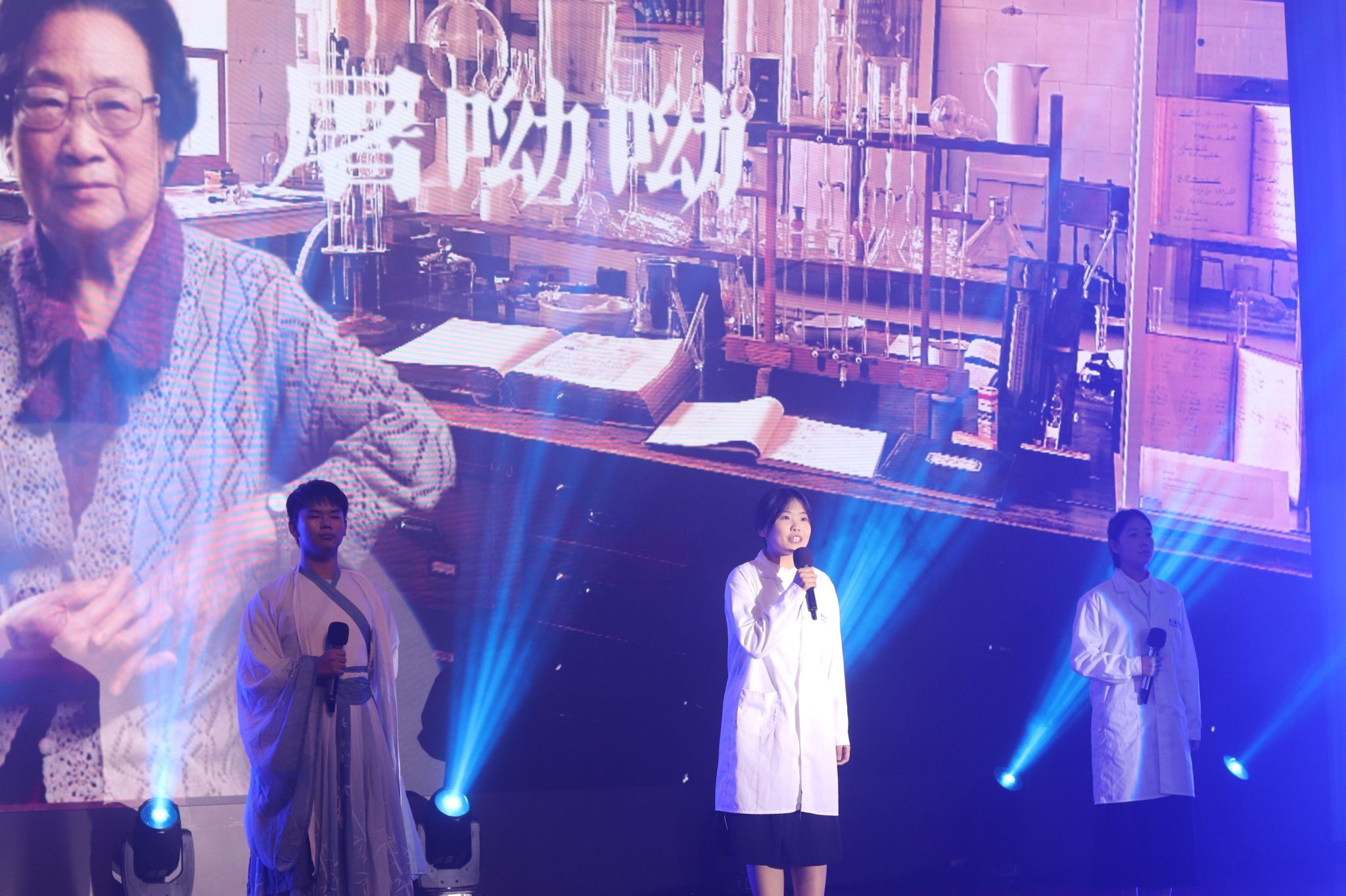 青春的光彩为梦想而绽放,年轻的征途在此刻启航。药学院主持队朗诵《青春药香,梦启新章》以声传情,讲述了药学前辈的仁心传承与新一代的使命担当,开启了晚会的第三篇章——“青春光彩,梦想启航”。