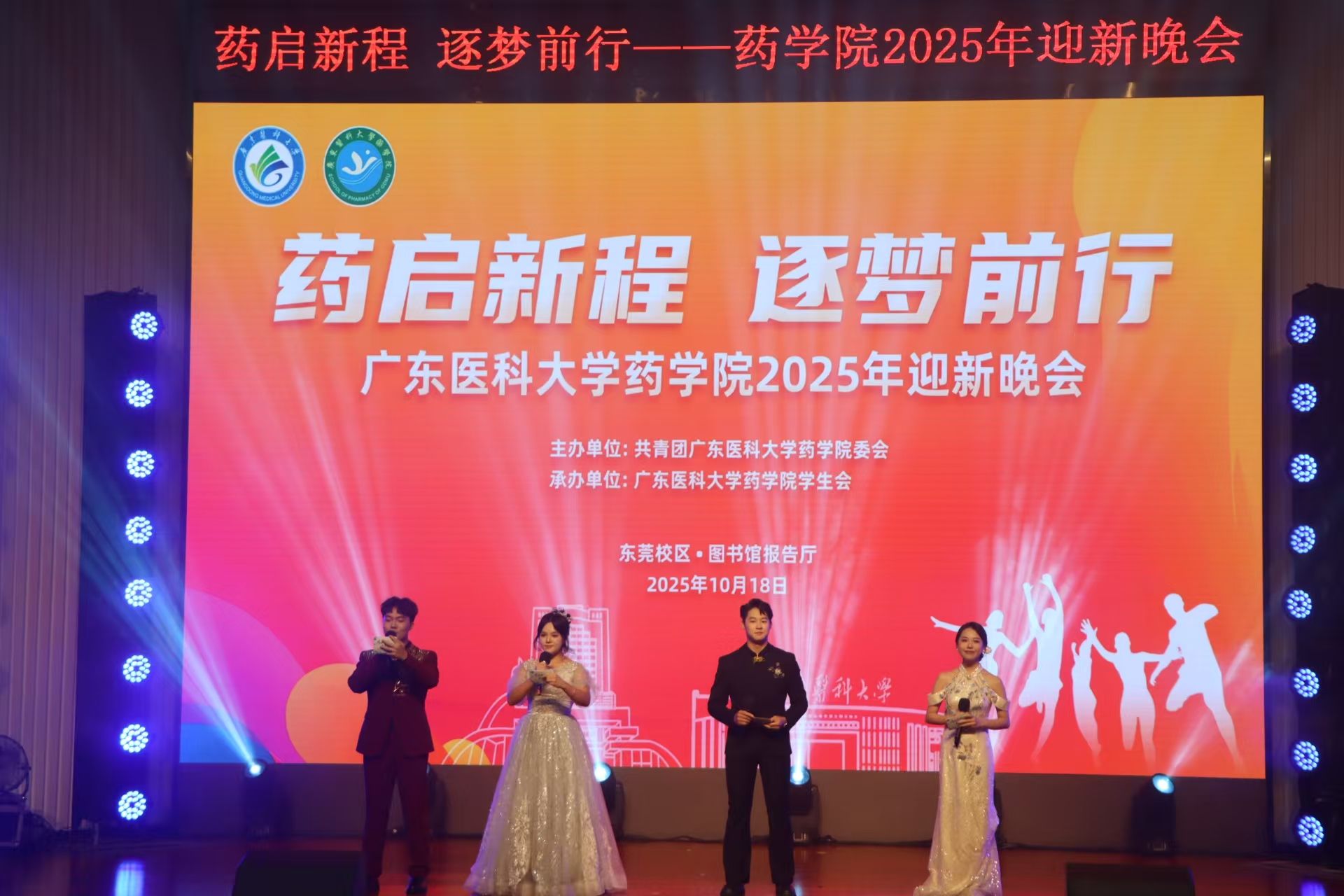 青春的音符跃动不止,奋进的脉搏永不停歇。本次迎新晚会既展现了药学院学子多才多艺、朝气蓬勃的精神风貌,也传递了学院对新生的热烈欢迎与殷切祝愿。期待 2025 级新生在药学院这个温暖的大家庭中,不负韶华、乘风破浪,携手奔赴灿烂未来,在青春画卷上书写属于药苑人的浓墨重彩。(文、图/药学院 审核/李宝红)