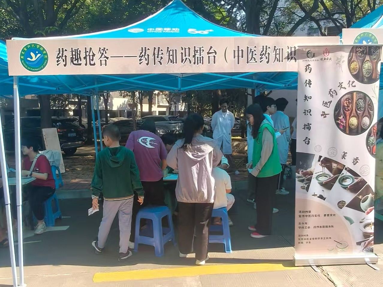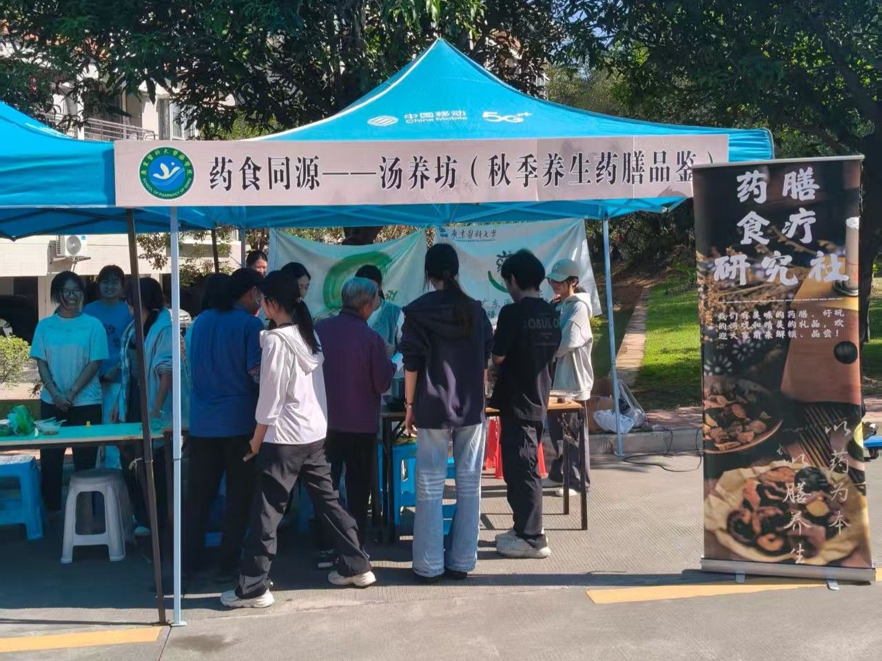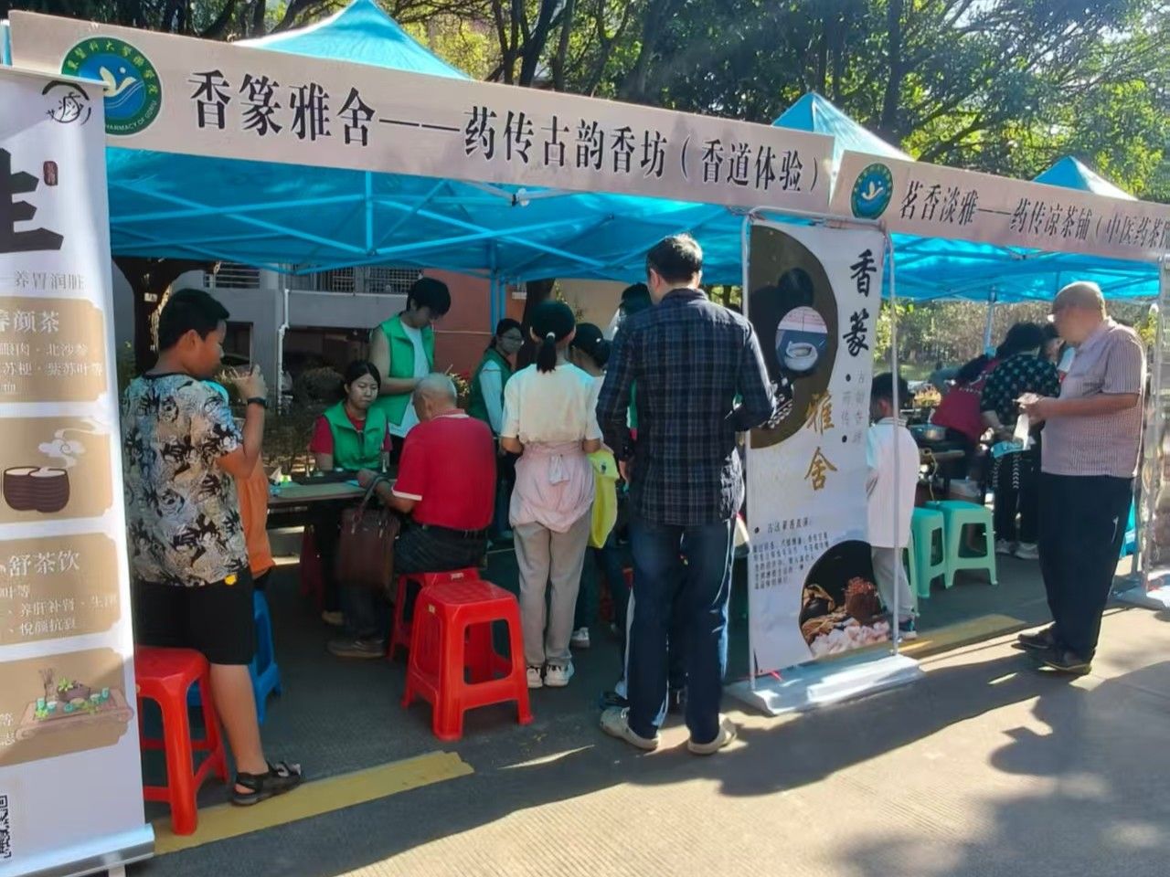 2025年11月16日,为进一步贯彻落实党的二十届四中全会精神,大力传承和弘扬中医药文化,增强师生对中医药的理解和认同。由学校工会主办,药学院工会分会、药学院关工委、"岐黄薪火"中医药文化传承工作室联合承办的"岐黄益家,康乐共享"中医药服务一条街活动在东莞校区教师公寓成功举办。学校工会副主席彭旭、学校关工委副主任郭金海、药学院领导班子成员、退休老干部及教师代表共同参与,全校工会会员及家属踊跃加入这场中医药文化盛宴,共同体验中华文明的独特魅力。