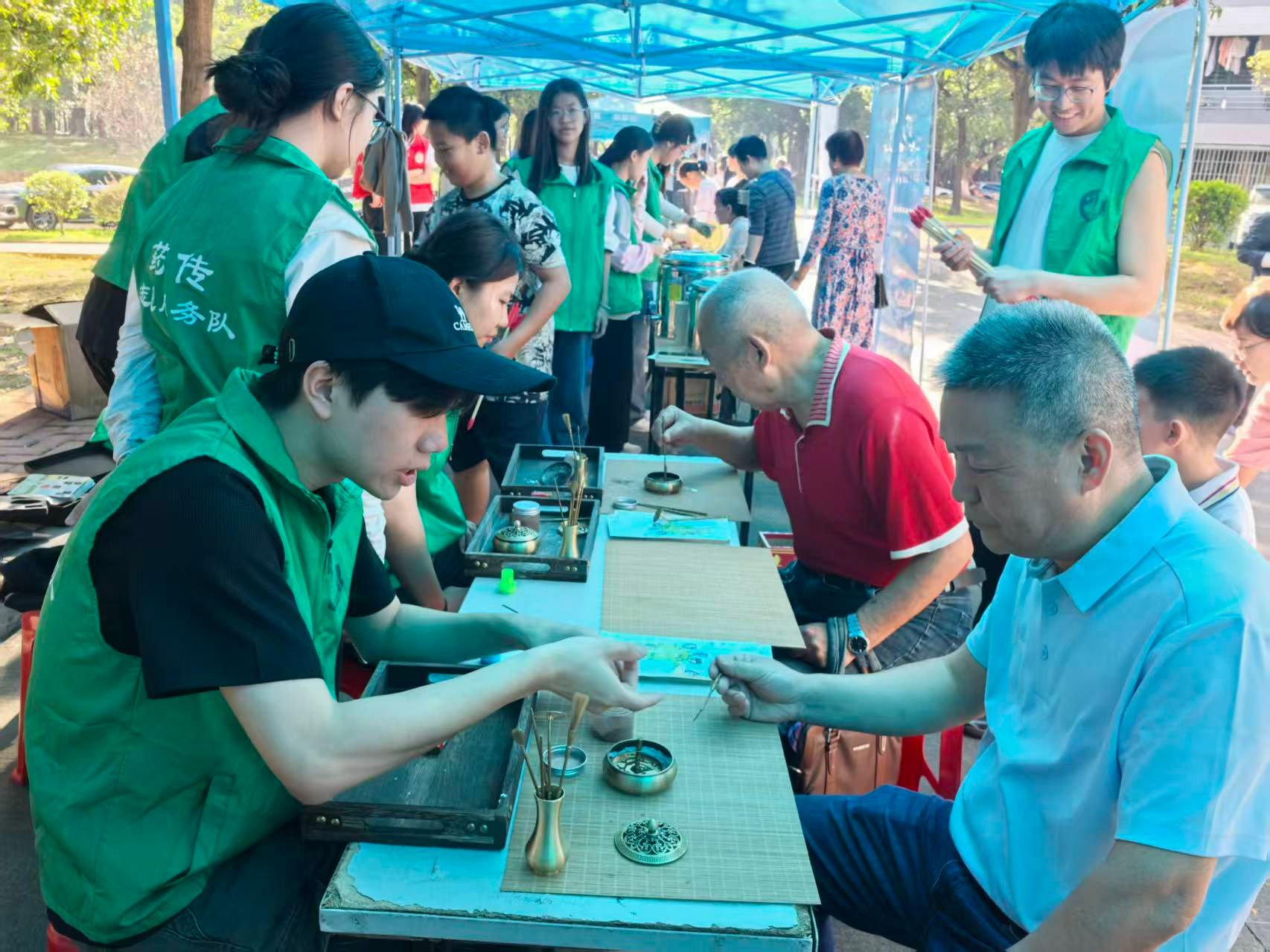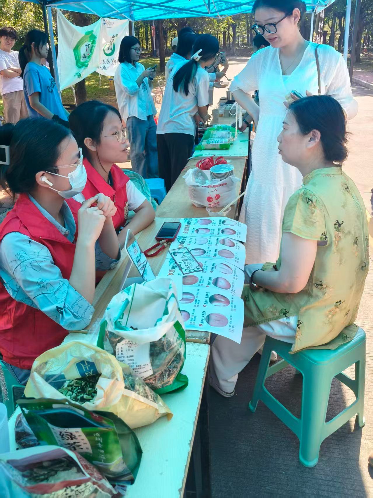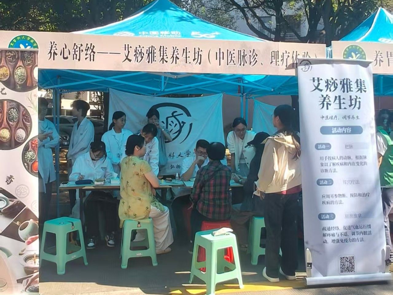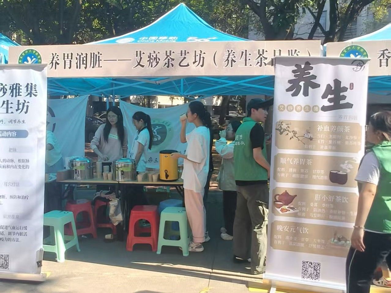 活动现场精心设置了八大特色展区:"药食同源汤养坊"以药膳品鉴展现中医食疗智慧;"艾暖方晴手作祛湿铺"通过DIY艾条和泡脚包传递传统养生技法;"养胃润脏艾痧茶艺坊"在氤氲茶香中普及药饮养生知识;"茗香淡雅-一药传凉茶铺"用现代饮品形式演绎经典凉茶配方;"香篆雅舍药传古韵香坊"以香道体验展现中医药文化雅韵;"药趣抢答药传知识擂台"通过趣味问答激发学习热情;"药香满屋桑榆手工坊"教习驱蚊香包制作;"养心舒络艾痧雅集养生坊"提供专业脉诊理疗服务。师生员工、退休教职工及家属们手持集章卡穿梭其间,在互动体验中感受中医理疗的神奇疗效,品味药膳食疗的独特魅力,领略中医药文化的博大精深。